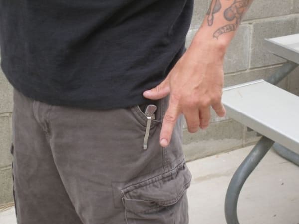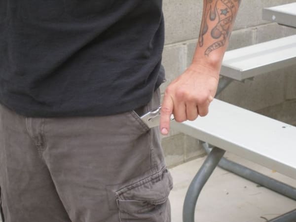 Have a subject turn sideways so you can see what he is retrieving from his pocket.