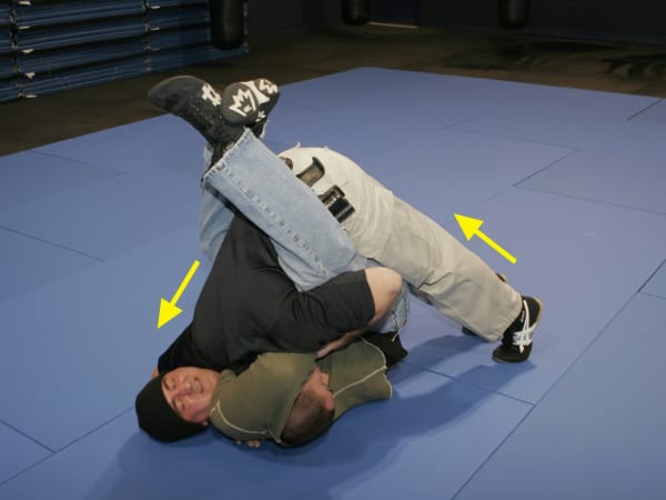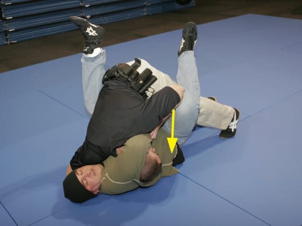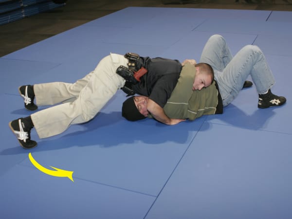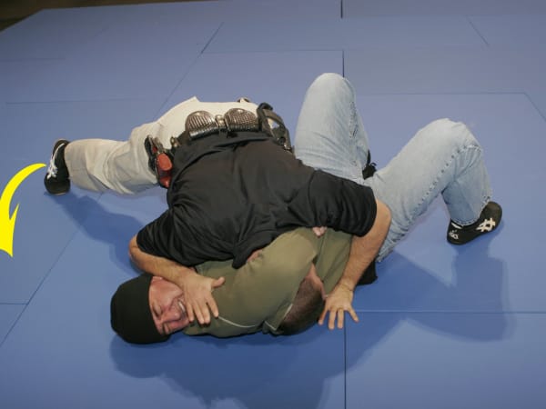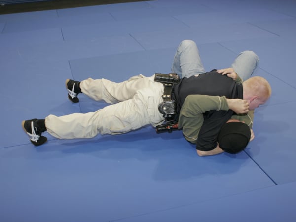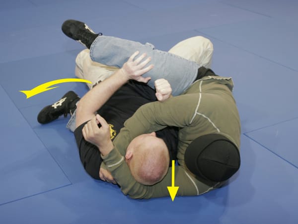 Continue moving to the choke side to break the choke hold and assume a superior position. You can now transition to your feet or another force option.