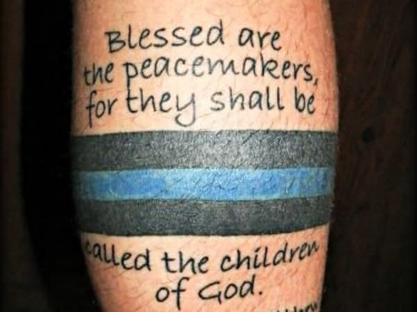 The officer quotes the "Blessed are the peacemakers" scripture from Matthew 5:9.