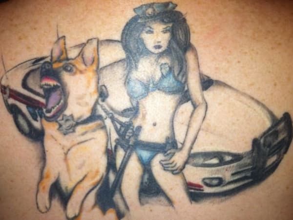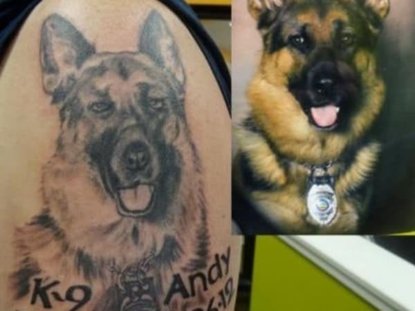 This officer's tattoo depicts his fallen K-9 partner, who died in a training accident.