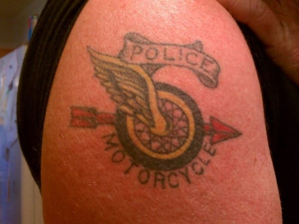 This officer got his police motorcycle tattoo after completing motor operator school in 2006.