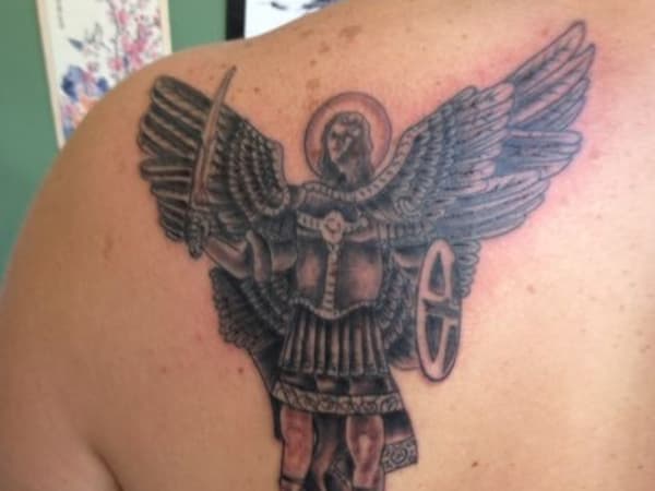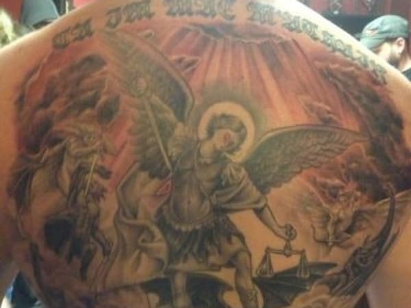 This officer based his Saint Michael tattoo on a statue in Kiev, Ukraine.