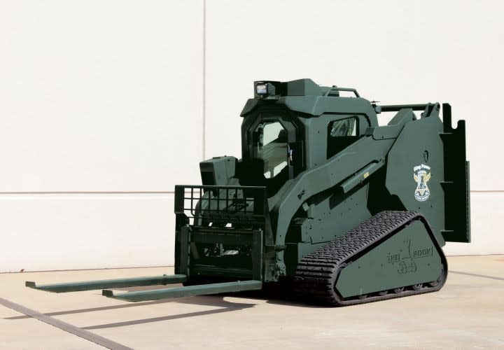 The Rook Critical Incident Vehicle's Hydraulic Breaching Ram attachment.