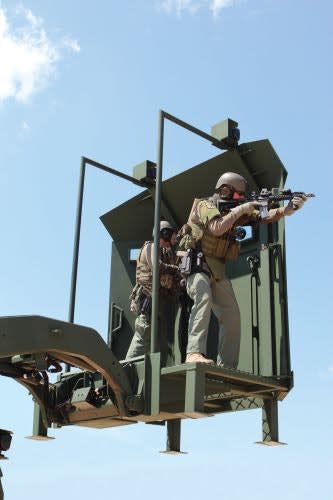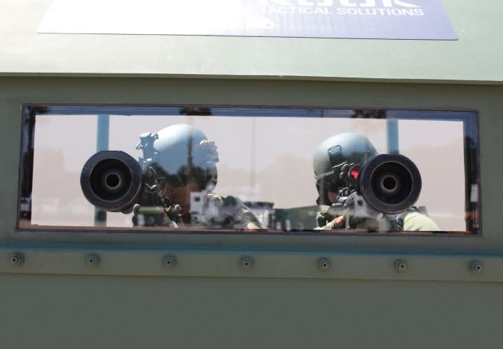 Gun port holes on The Rook Critical Incident Vehicle's Armored Deployment Platform.