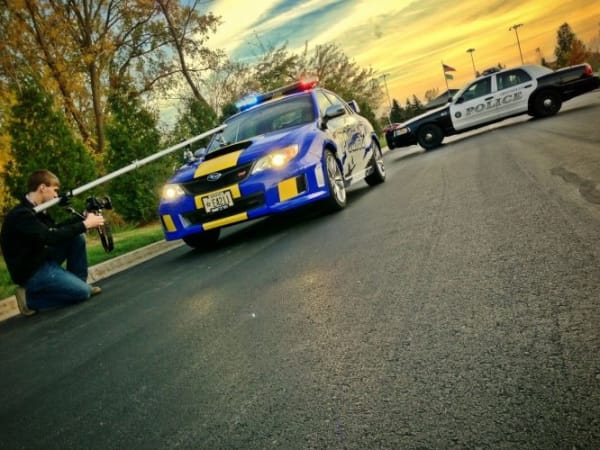 To get his enhanced shots of the Subaru, Baumgardner attached a rolling camera rig that included a Manfrotto Magic Arm, Canon T2i DSLR camera, and Tamron 10-24mm lens.