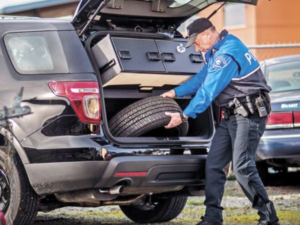 D&R Electronics’ lightweight aluminum Ford Utility Tactical Storage Cabinet Kit (model No. 933-0096A) fits the 2012/2013 model-year Ford Police Interceptor Utility and provides better organization of gear. The kit includes a subframe with an integrated electronics mounting panel, single drawer cabinet with dividers, and rear cargo partition, and it will still allow you to remove your spare tire.