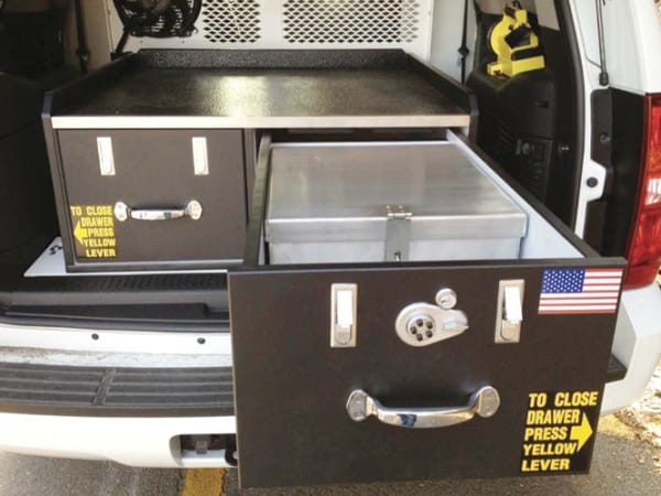 In addition to its custom-designed weapons racks, cabinets, and cases, DLS Weapons Storage Systems sells Tufbox vehicle lockboxes that provide secure and efficient stowage for firearms, evidence, and other equipment. Trunk-mounted designs install in standard cruisers. Four different Tufbox models are designed to mount in the rear compartment of an SUV.
