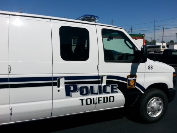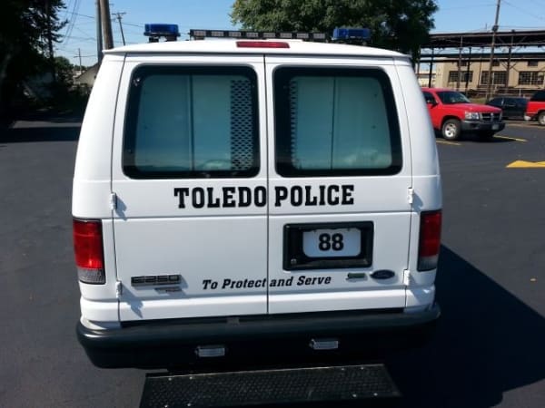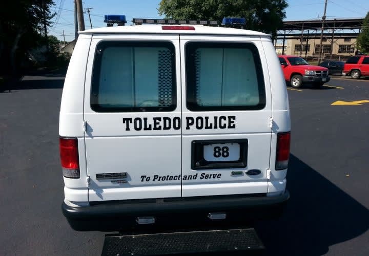 The van has been equipped with a emergency lighting and stencil lettering that reads "Toledo Police: To Protect and Serve."