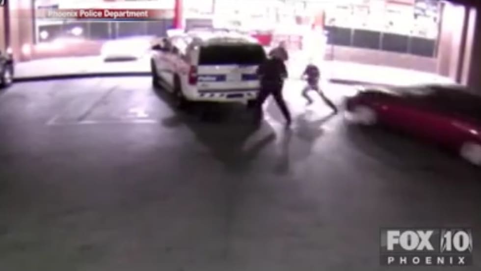 Driver Rams 3 Phoenix Officers with Car