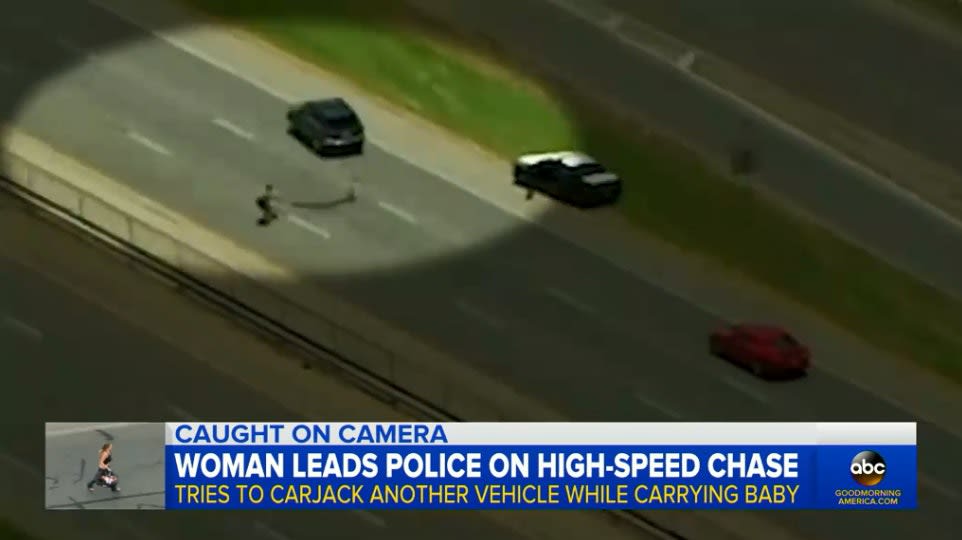 Woman Carrying Baby Crashes During Pursuit, Attempts Carjacking