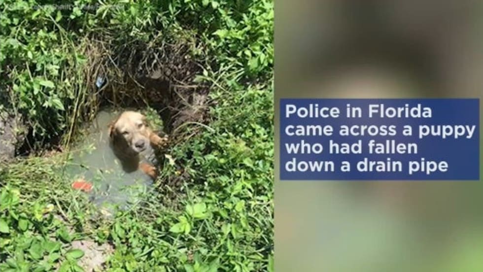 Florida Police Rescue Puppy Trapped in Drain Pipe