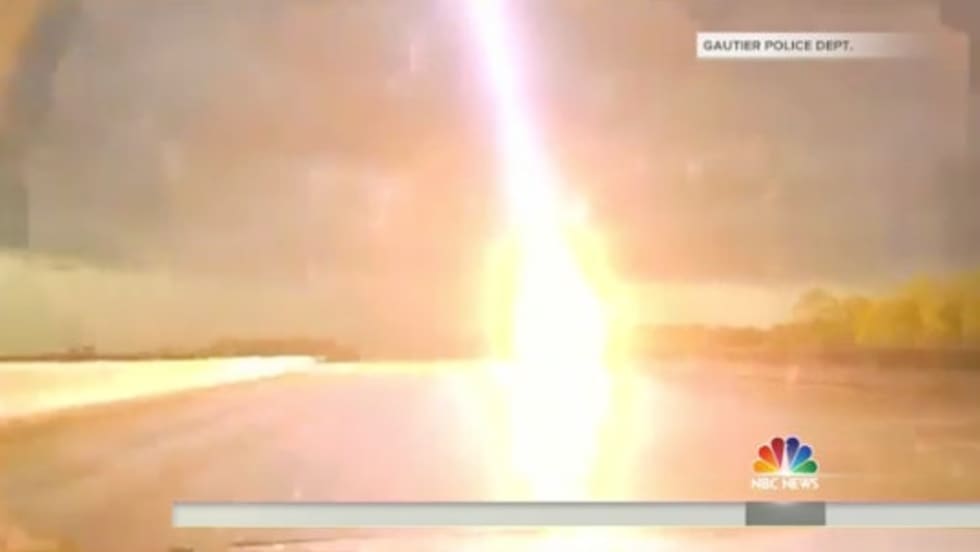Mississippi Officer's Dash-Cam Captures Near Miss by Lightning Strike