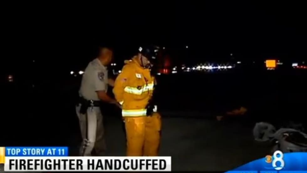 CHP Officer Handcuffs Firefighter at Crash Scene