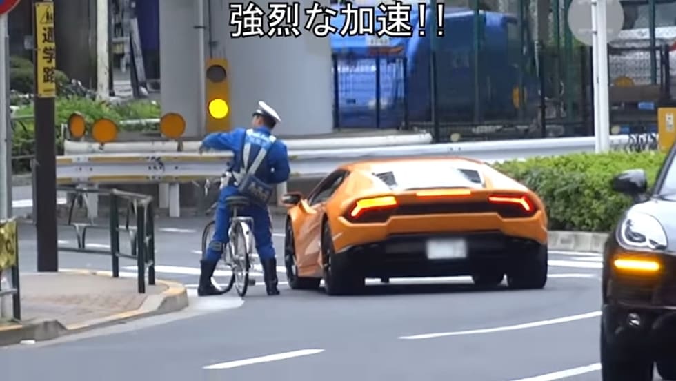 Japanese Bicycle Officer Chases Down Lamborghini, Writes Driver a Ticket