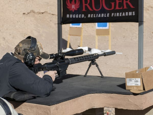 After stepping off the shuttle bus and into a dust storm reminiscent of the Mint 400 scene from the movie “Fear and Loathing in Las Vegas,” I determined that attempting to shoot any firearm long distance would be far more challenging than my novice rifle shooting skills could handle. I primarily stuck with handguns and short-range rifle shooting.