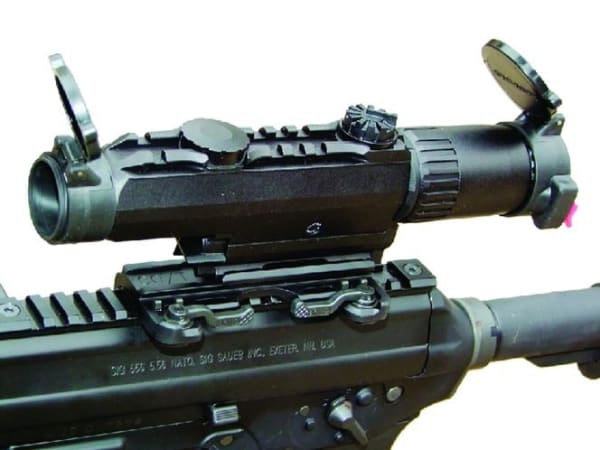 Leupold Mk IV CQT is a variable power scope that has a reticle with a lighted circle dot. When mated with an accurate rifle, this setup will easily hit a target as small as a clay pigeon at 200 yards. The scope body has Picatinny rails on it so you can mount IR designators or laser designators should your mission require it.