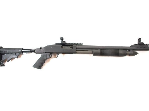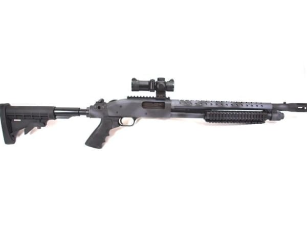 With its 18.5-inch barrel and serrated muzzel, this breacher is set up for SWAT operators to resemble an AR-type rifle. It arrives with ghost-ring sights for improved accuracy over bead sighting.