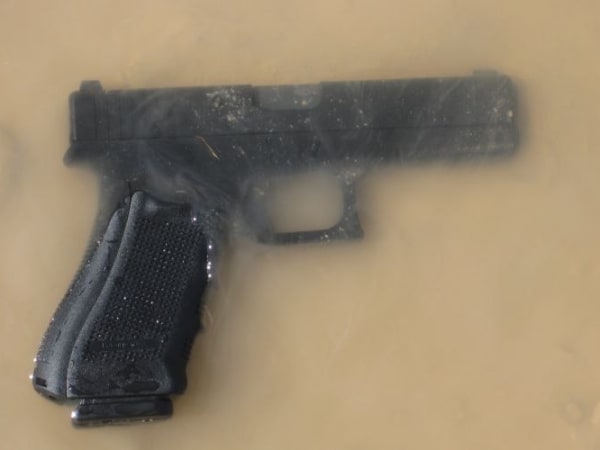 After completely submerging the Gen4 G22 in muddy sand-filled water that accumulated in the desert after heavy rainfall, our author drove to a safe area and emptied one magazine of .40 S&W ammunition at a paper target. Then he repeated the process. On both occations, it worked flawlessly. Photo courtesy of Nick Jacobellis.