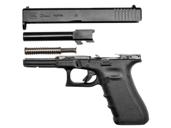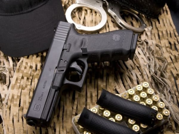 The Glock Gen4 G22 fits right in with a pair of handcuffs and .40 caliber rounds. Photo courtesy of Glock.