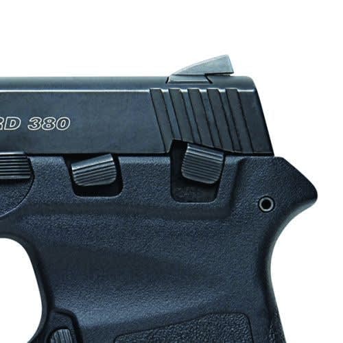 The integral InSight laser can be turned on and off with a control switch in front of the trigger guard.