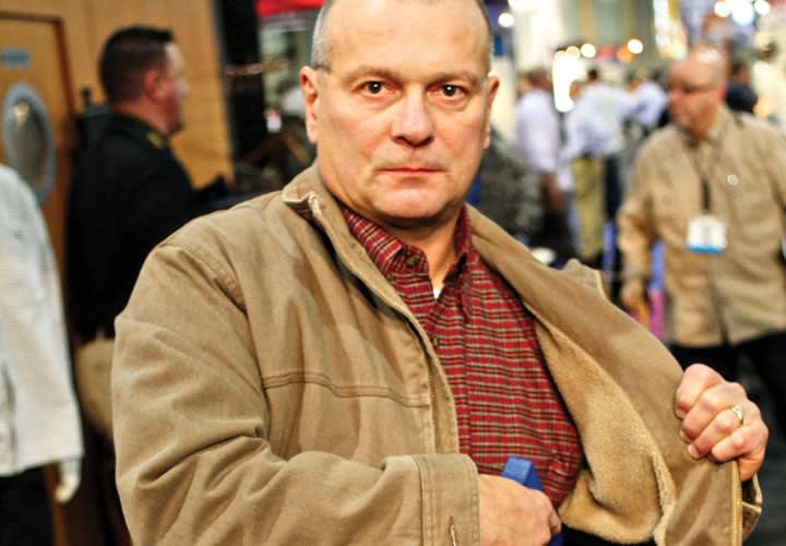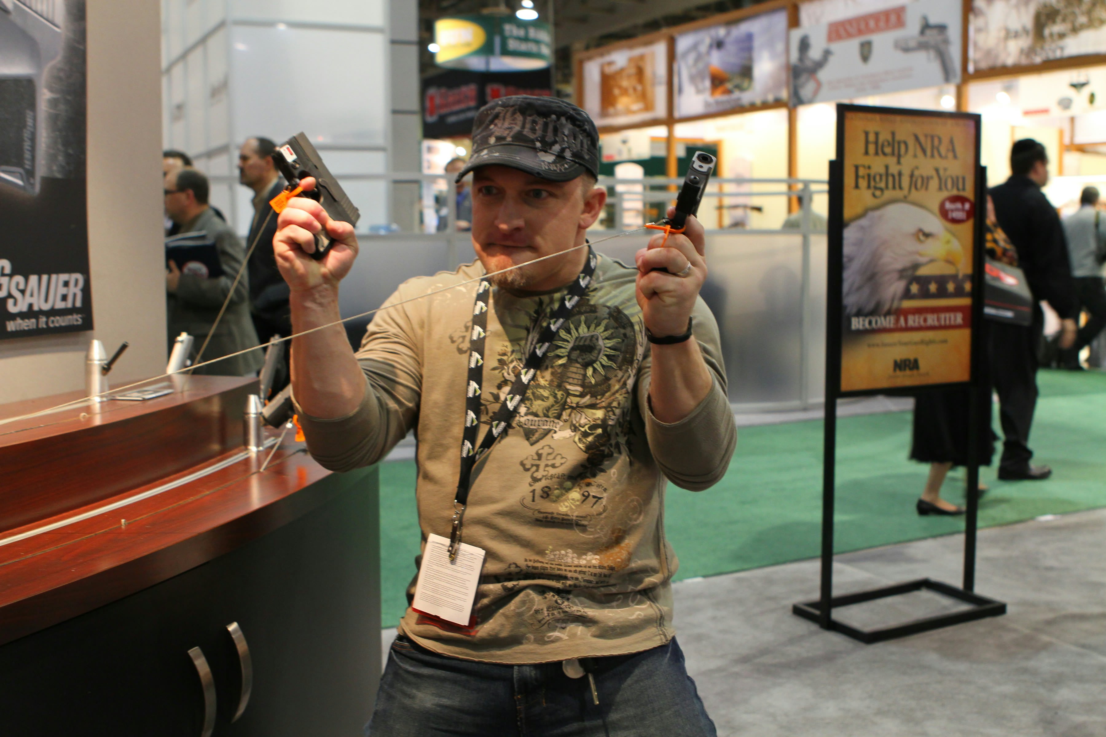 One attendee displays his best "Yosemite Sam" pose on the show floor.