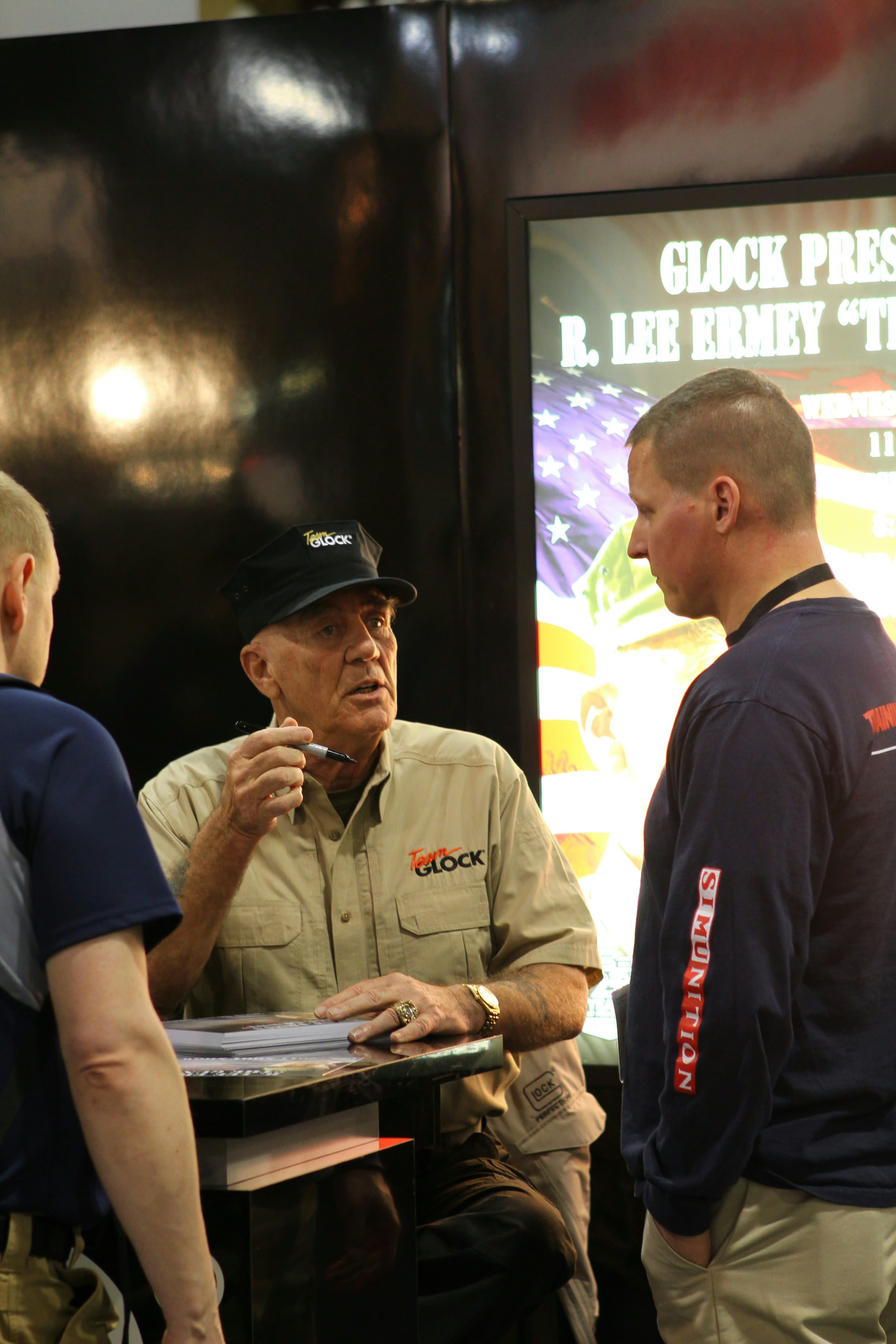 R. Lee Ermey ("The Gunny") is a regular attendee at SHOT. He endorses Glock handguns and SOG knives.
