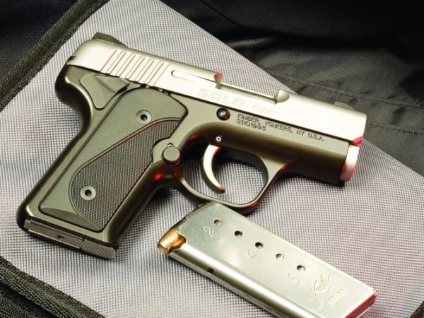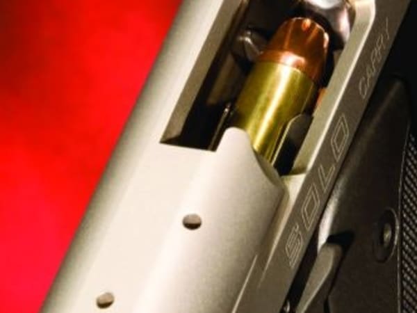 The Kimber Solo Carry pocket pistol fits into the palm of your hand and weighs only 17 ounces, making it very easily concealed. What makes the pistol noteworthy is that it's chambered in 9mm rather than .380 ACP or .38 Special. Here are additional photos of the gun, and be sure to read our "Arsenal" review, "Kimber Solo Carry Pistol."