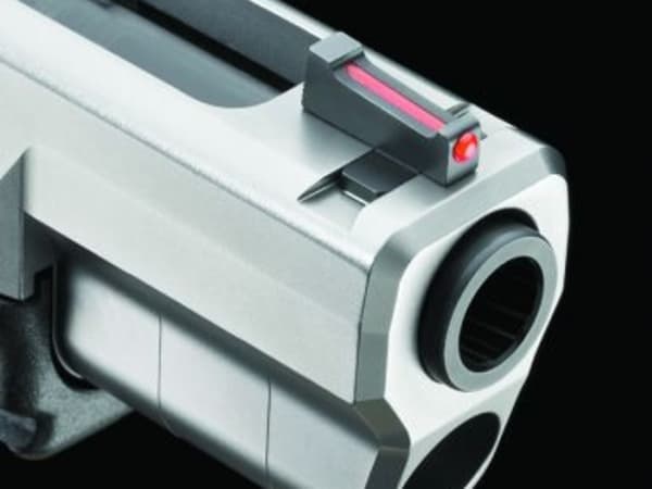 The rear sight mates up with a fiber-optic front sight to give the shooter faster sight alignment.