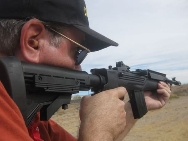 Using the iron sights can be difficult because the accessory rail partially blocks the view. Photo courtesy of Nick Jacobellis.