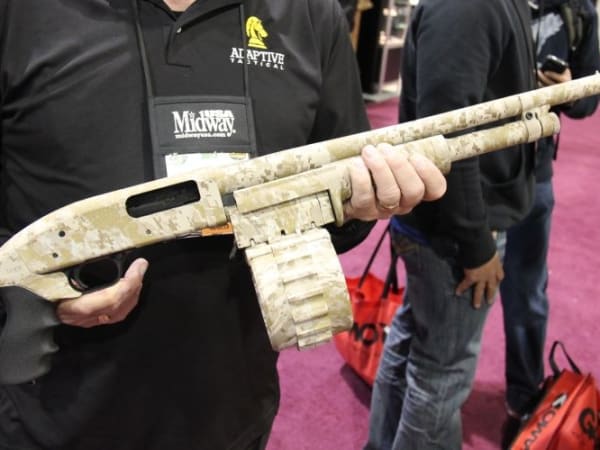 Lyman's Adaptive Tactical line includes customizable tactical shotguns with pistol grips, side saddles, and a 10-round snail shell magazine.